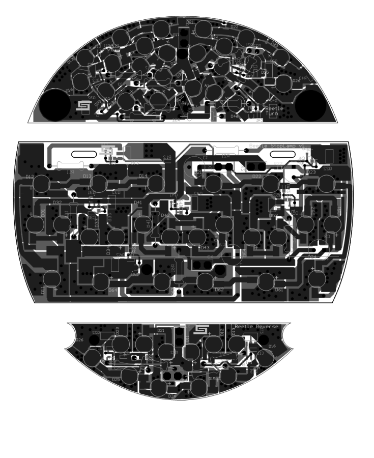 Power LED’lerin PCB üzerinde soğumasını sağlamak için hiç çizmediğim kadar çok bakır yüzeyler çizdim bu kartlarda ve bu epey zaman aldı. Şimdi kartları basacağız ve hemen deneme yapacağım. Nasıl gözükeceğini çok merak ediyorum.