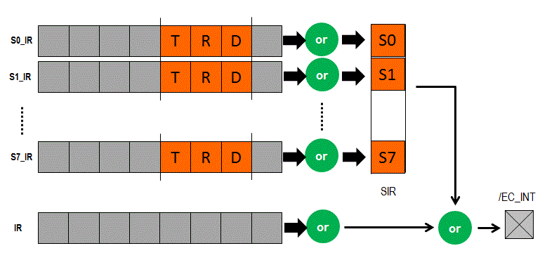 * Soket kesmeleri: SIR register’ındaki bir bitin aktif olması ile oluşur. 8 soket kesmesi register’ına (Sn_IR) ait kesme kaynaklarından birinin aktif olması SIR üzerindeki o sokete ait bitin aktif olmasını sağlar.