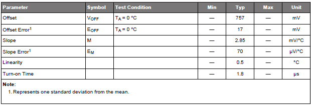 Sensörün V / *C kazancının offset hatasına oranına bakarsanız, çipten çipe 6 *C’lik bir 0 *C noktası farkı olduğunu göreceksiniz ki bunun kullanacağınız 100 çipten 68’i için garanti edildiğini de göz önüne almalısınız. Uzun lafın kısası, eğer mutlak değer doğruluğu sizin için önemliyse her bir board için 0*C offset’ini ölçüp flash’ta saklamanız gerekir. (Bununla kim uğraşır bilemiyorum)